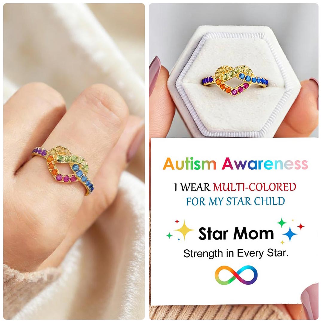 - 1*Autism Awareness-Colorful Heart Knot Ring