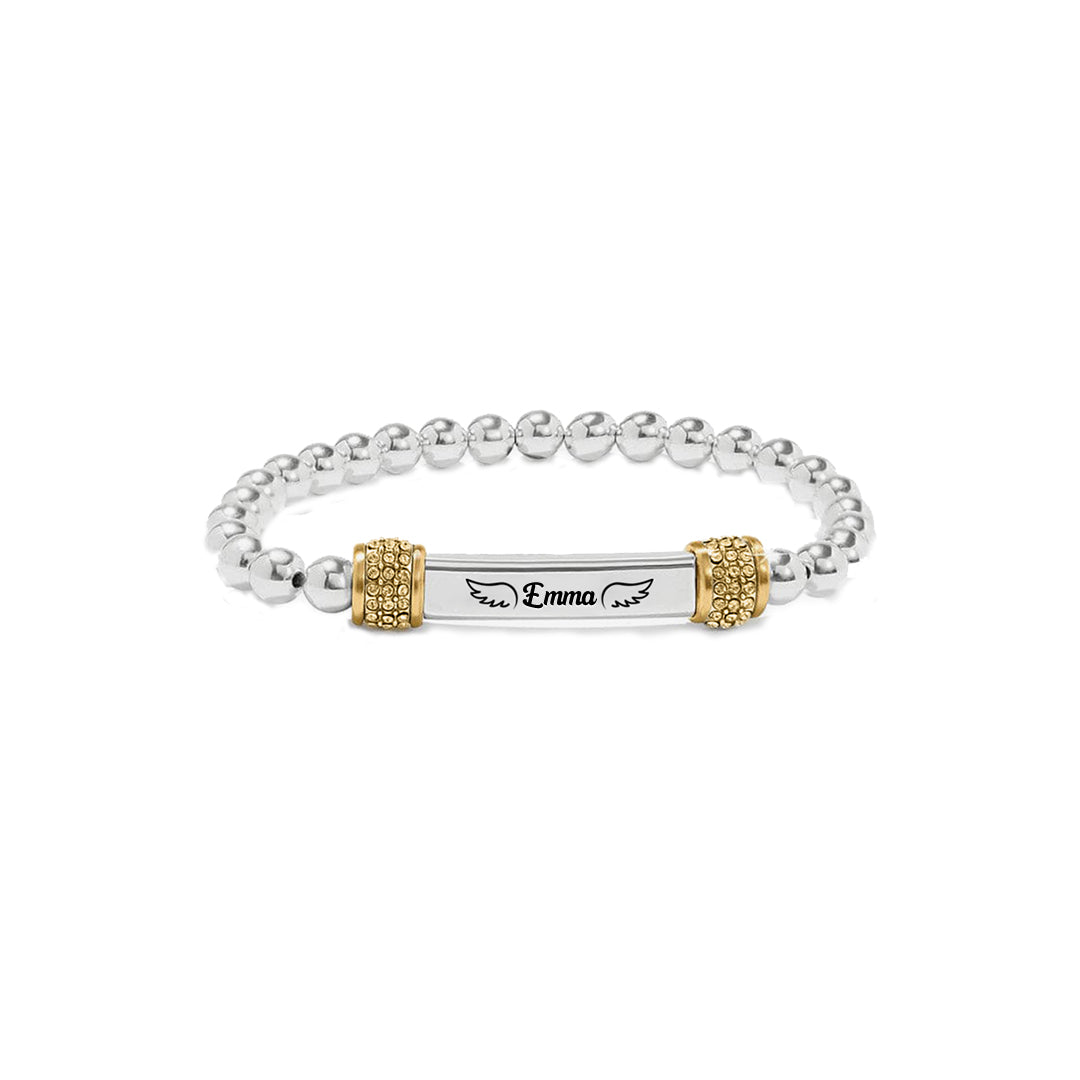 FOR MEMORIAL -I’m a Mother To a Daughter With Wings Custom Name Bead Stretch Bracelet