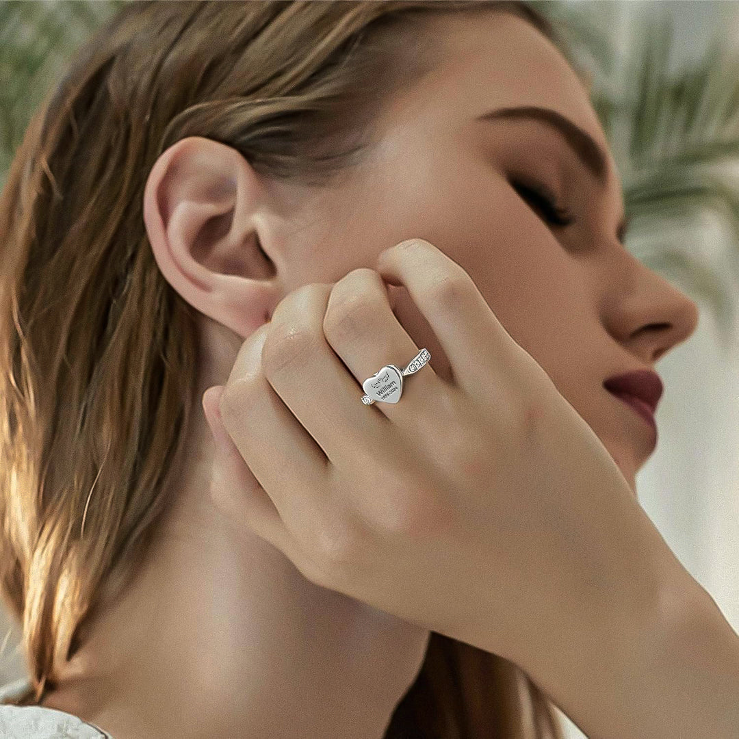 - 1*For Memorial-Personalized Name Date Memorial Heart Urn Ring