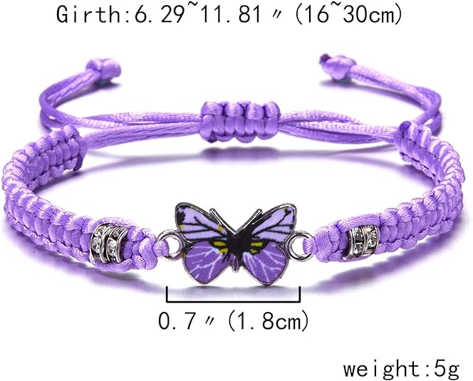 - Unique Design: Handmade braided rope bracelet with a colorful butterfly pendant, making it a one-of-a-kind piece of jewelry.