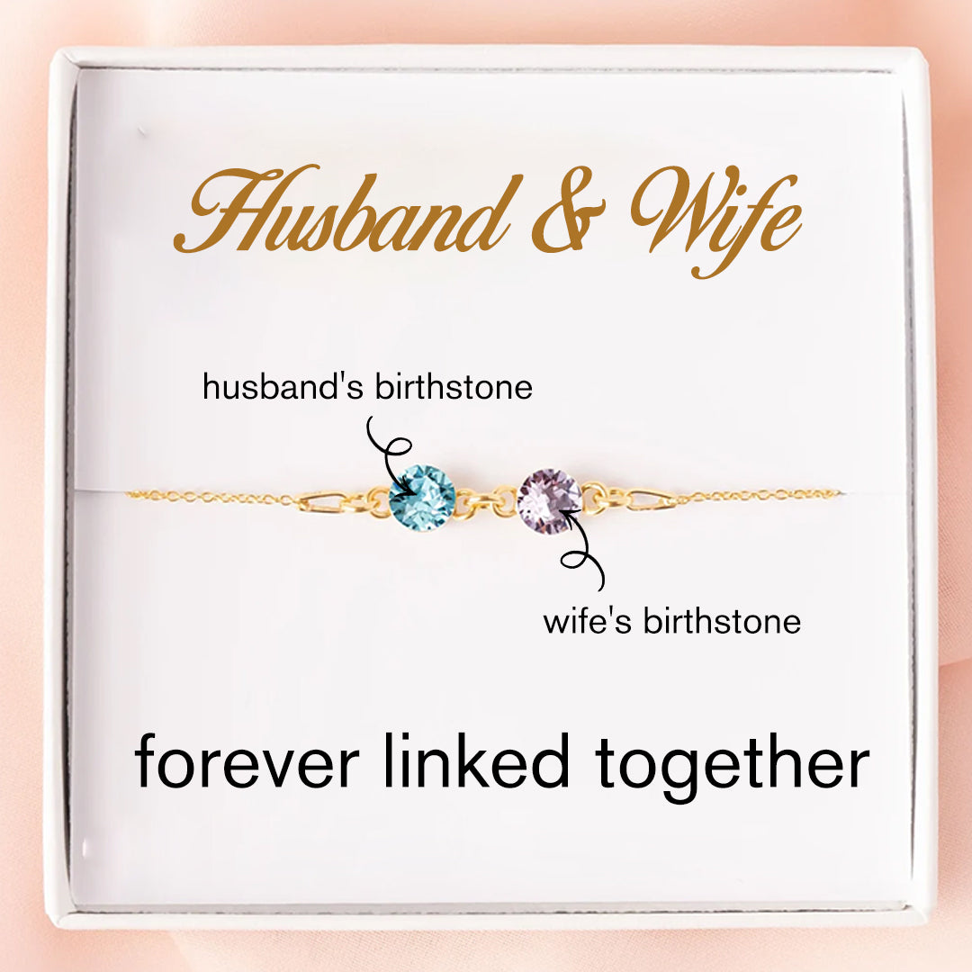 Husband and Wife Forever Linked Together Custom Birthstones Bracelet