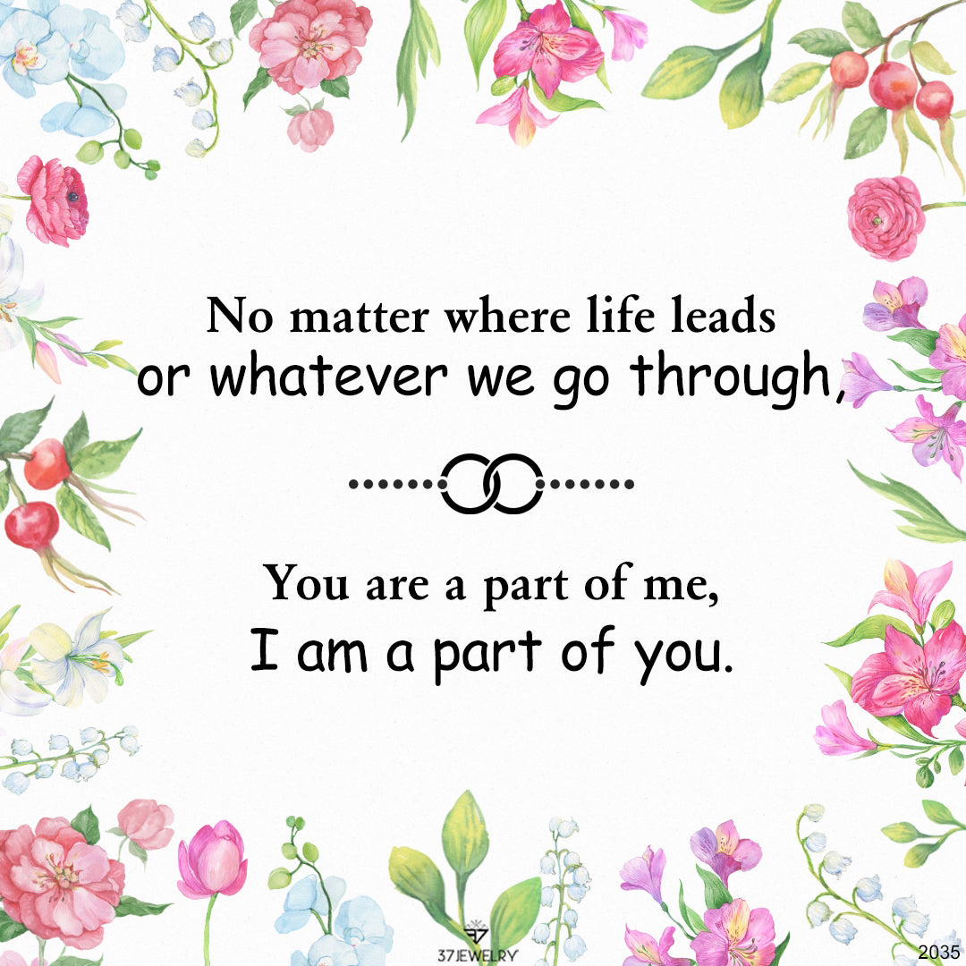 Two circles are tightly interlinked, much like the relationship between two loved ones. You are an indispensable part of my life, and I am a part of yours. This profound connection illustrates the special and strong emotional bond between us.