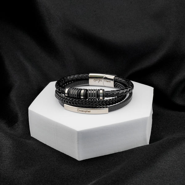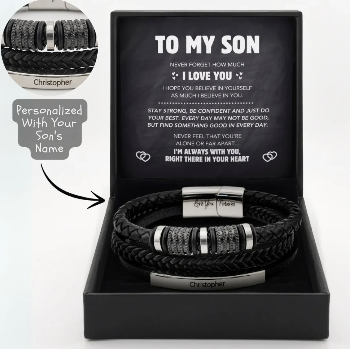 Son's Forever Connected Leather Bracelet Gift Set with Engraved Name